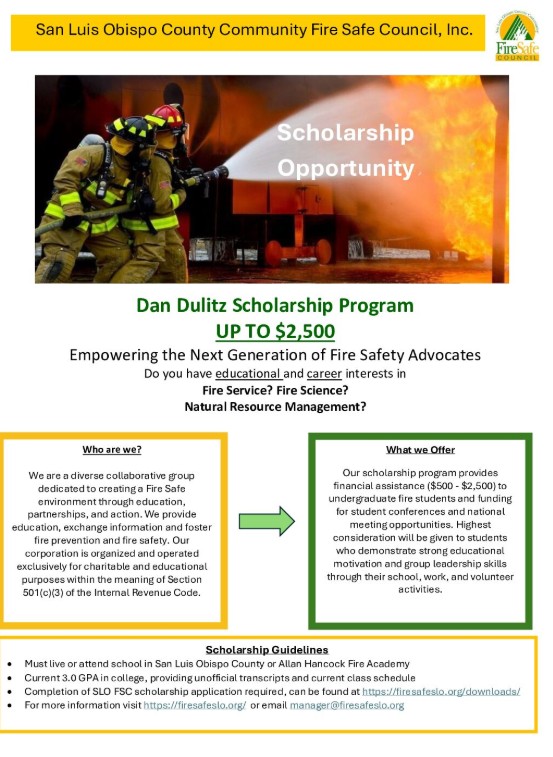 Announcing the 2025 Dan Dulitz Scholarship Program: Empowering the Next Generation of Fire Safety Advocates. The Dan Dulitz Scholarship Program offers financial assistance ranging from $500 to $2,500 to deserving undergraduate fire students.